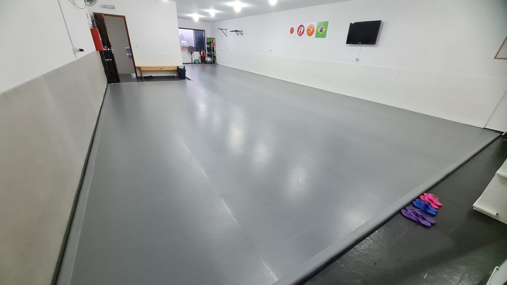 Com tatame profissional especialmente desenvolvido para a prática do Jiu-Jitsu, com segurança e higiene. Proteção nas paredes. Ambiente com excelente ventilação natural e mecânica.